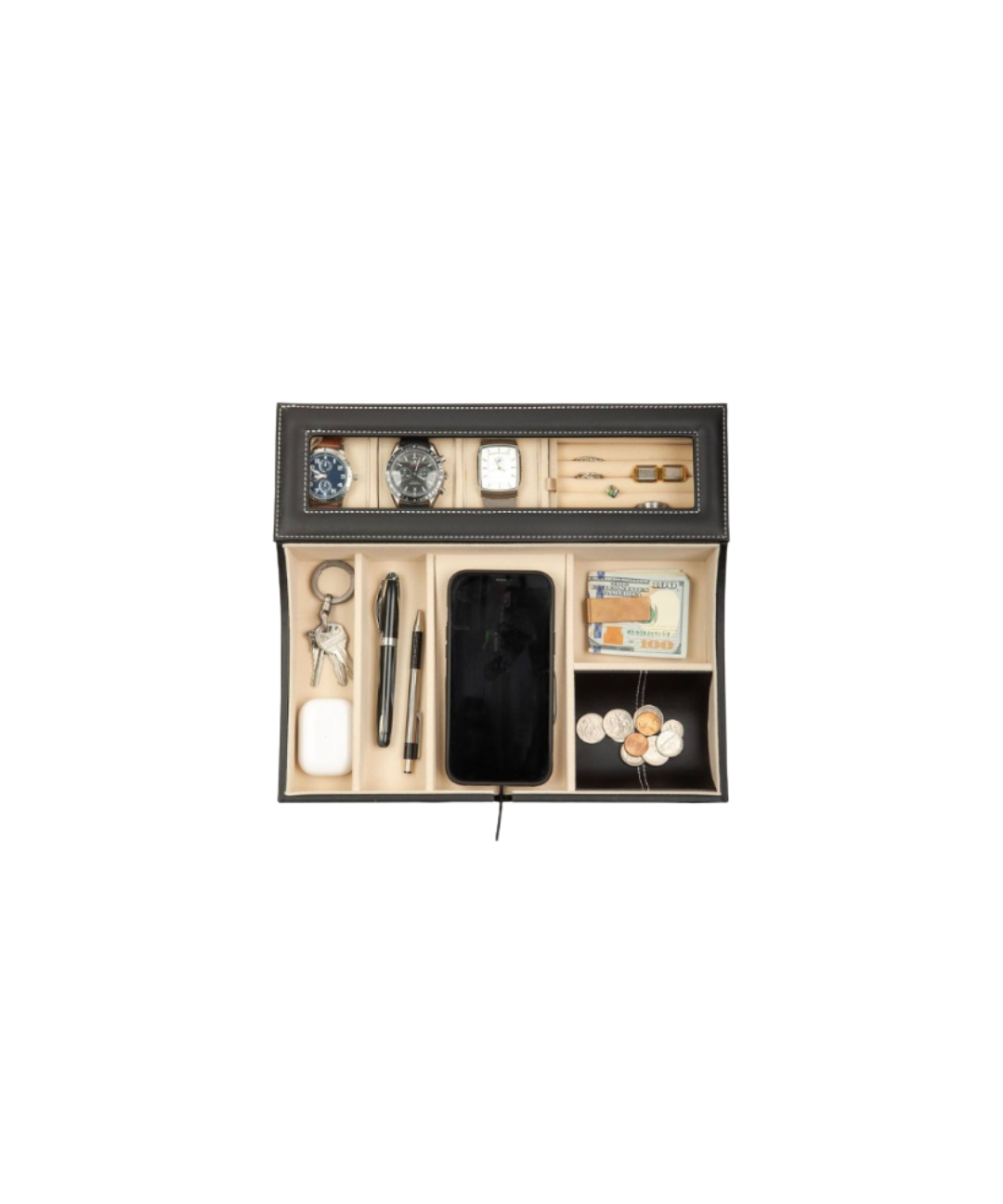 That can look like a nice watch at a price that doesn’t feel unhinged, or a weekender that upgrades his current duffel that has seen much better days. It might even be a small luxury he’d never think to buy for himself, like a passport holder, a towel warmer for the bathroom, or a valet tray that finally gives his keys, wallet, and random loose change a home in his nightstand.