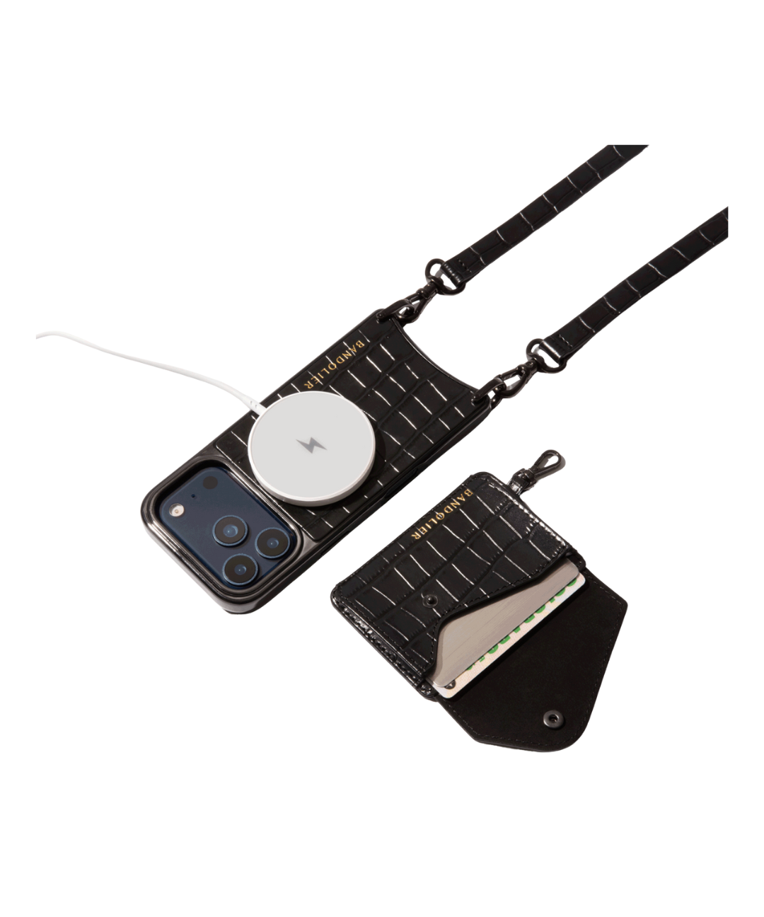 Remi Magnet Wallet Crossbody Phone Case (Black Croc/Pewter)
